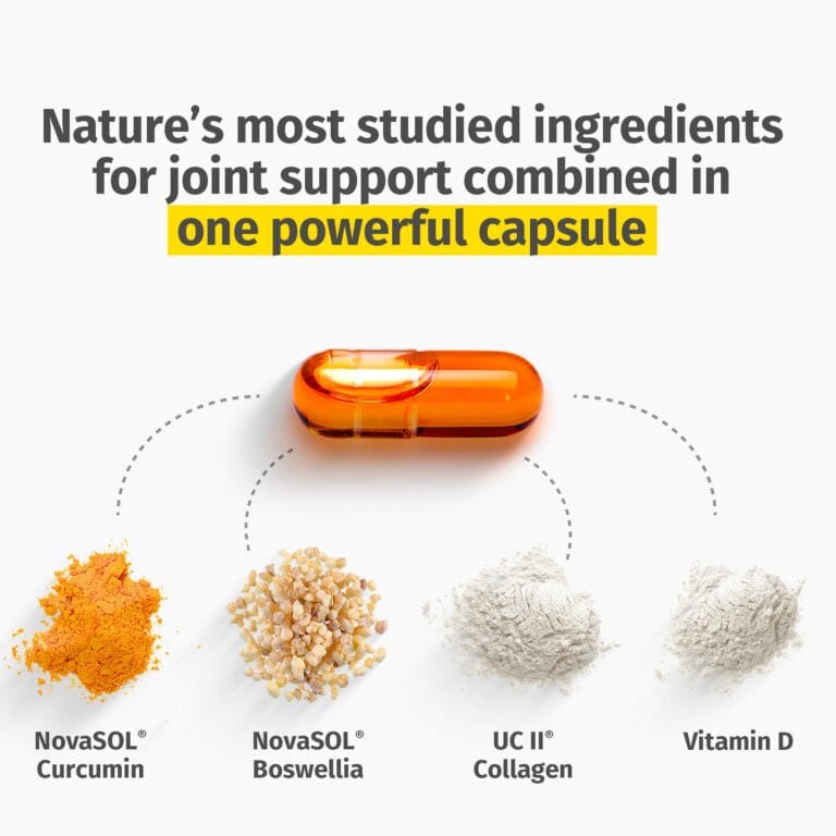 Contiene una combinación excepcionalmente biodisponible de Boswellia y curcumina en forma micelar: NovaSOL Boswellia/Curcumina.